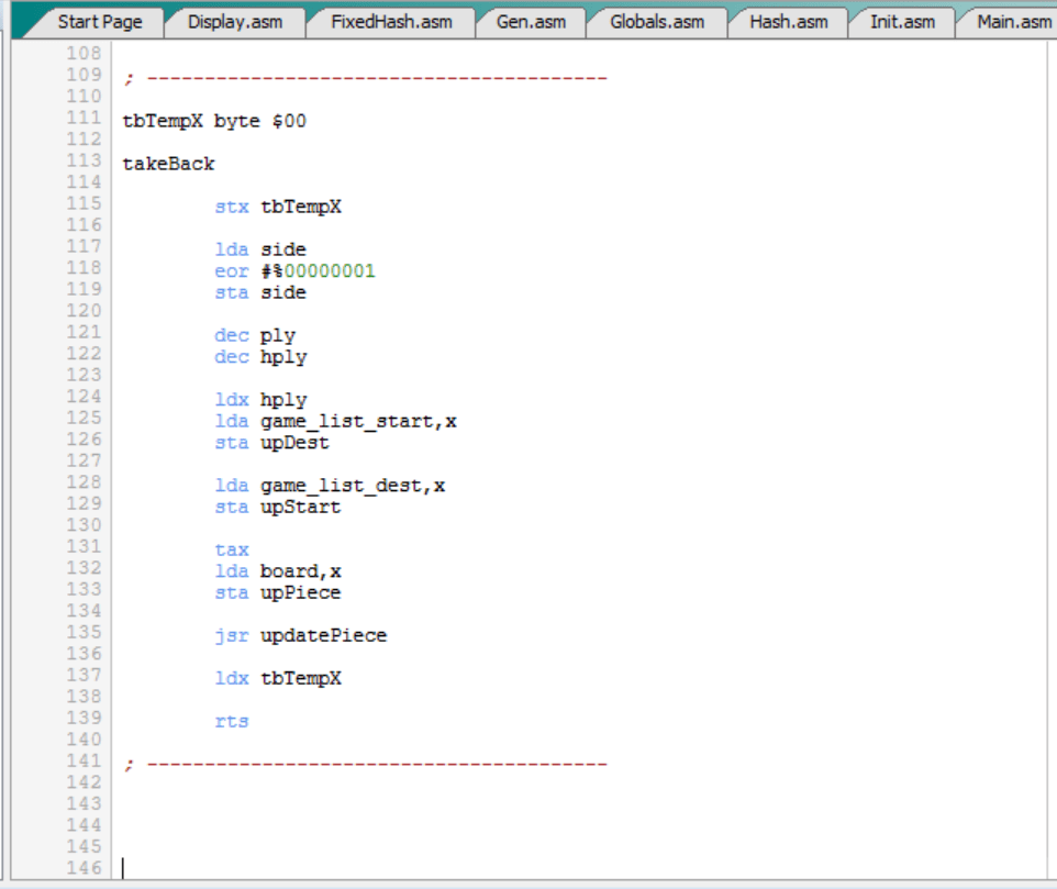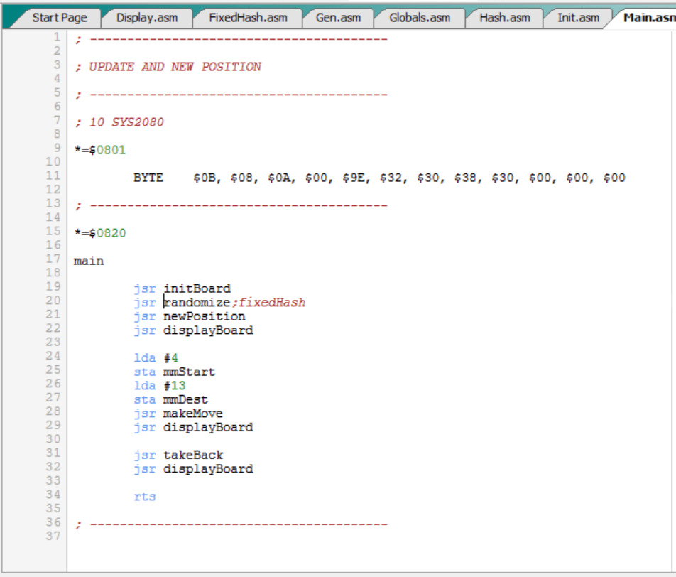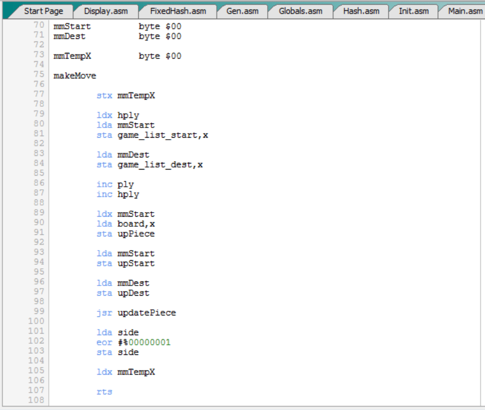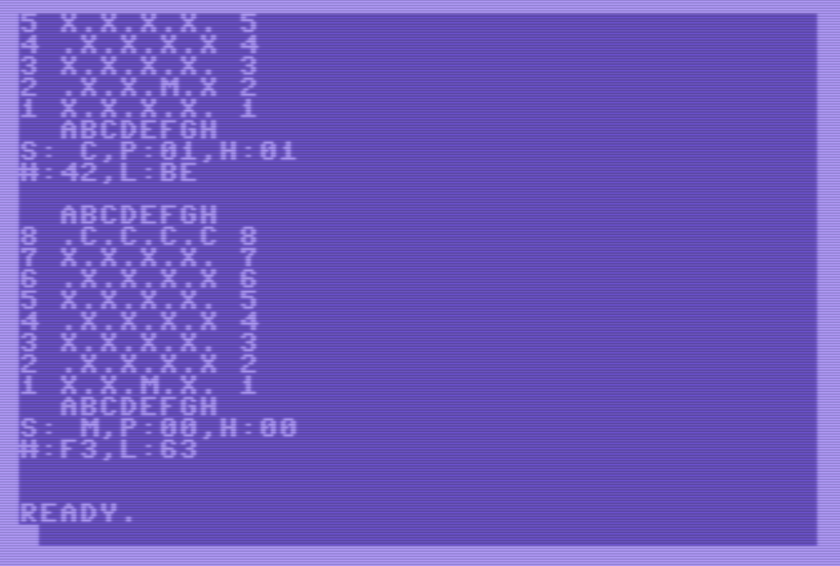 Como podemos ver, la evaluación del tablero depende de las posiciones de las piezas. Y como el C64 elegirá como óptimos los movimientos que maximizan o minimizan la evaluación, en función del turno, en el fondo lo que tenemos es que las tablas de evaluación (“*_scores”) influyen en los movimientos que se eligen y realizan.