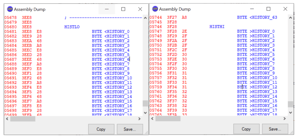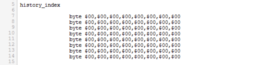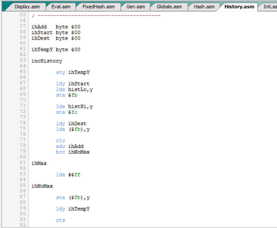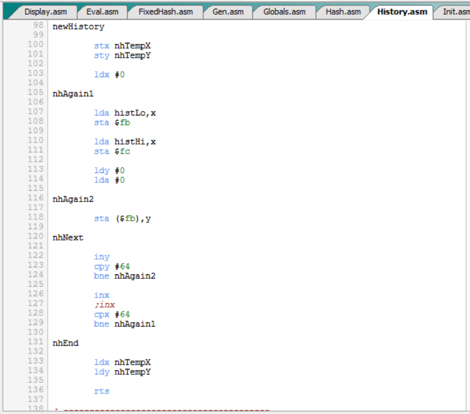 Desde el punto de vista del código ensamblador, las principales novedades se concentran en un nuevo fichero “History.asm”. Este fichero contiene: