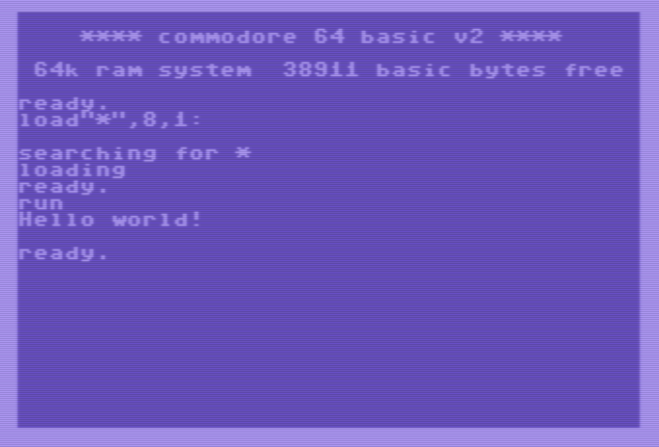Todo esto lo podemos comprobar si arrastramos el fichero “hello” hasta el emulador VICE:
