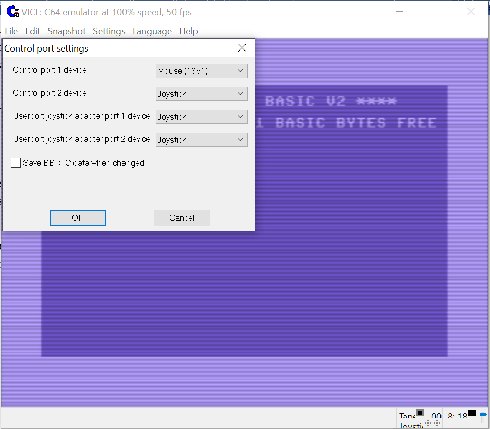 En VICE es posible crear y conectar imágenes T64 y D64. Por ejemplo, con la opción File > Attach disk image > Drive 8 podemos: