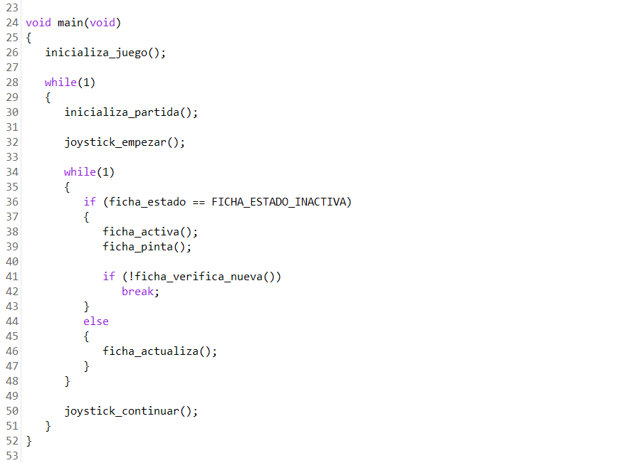 Una vez que tenemos los mimbres nos falta tejer el cesto. Y el “cesto” es el tetris_main.c.