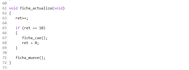 Cuando diseñamos la caída de las fichas vimos que, para que la caída no fuera muy rápida, convenía introducir un retardo (recordemos la variable ret):
