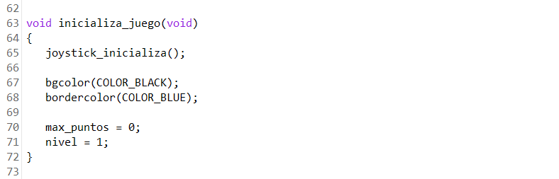 La variable nivel la inicializamos a 1 en la inicialización del juego, pero luego el jugador podrá cambiar ese valor: