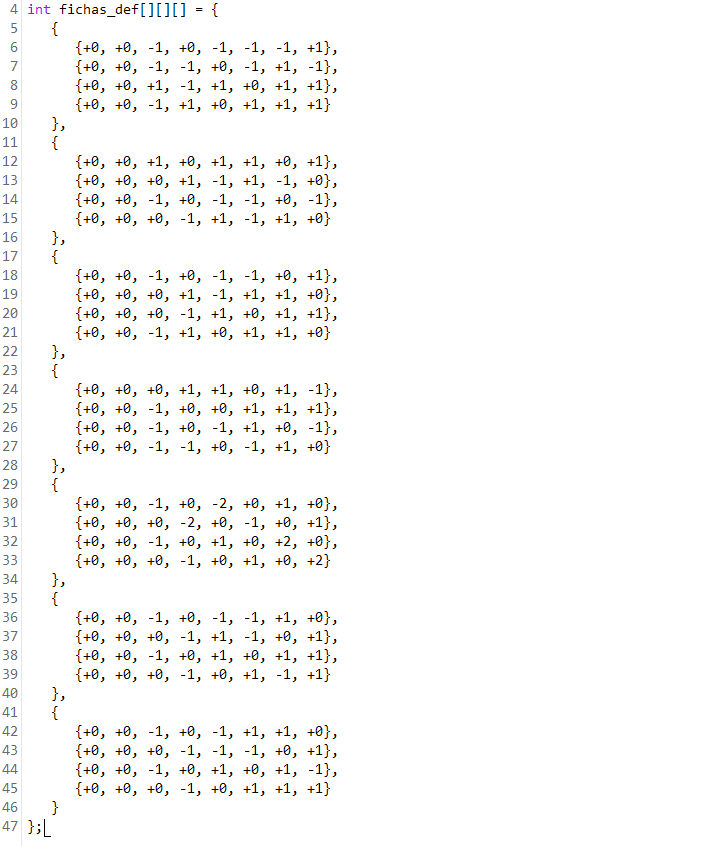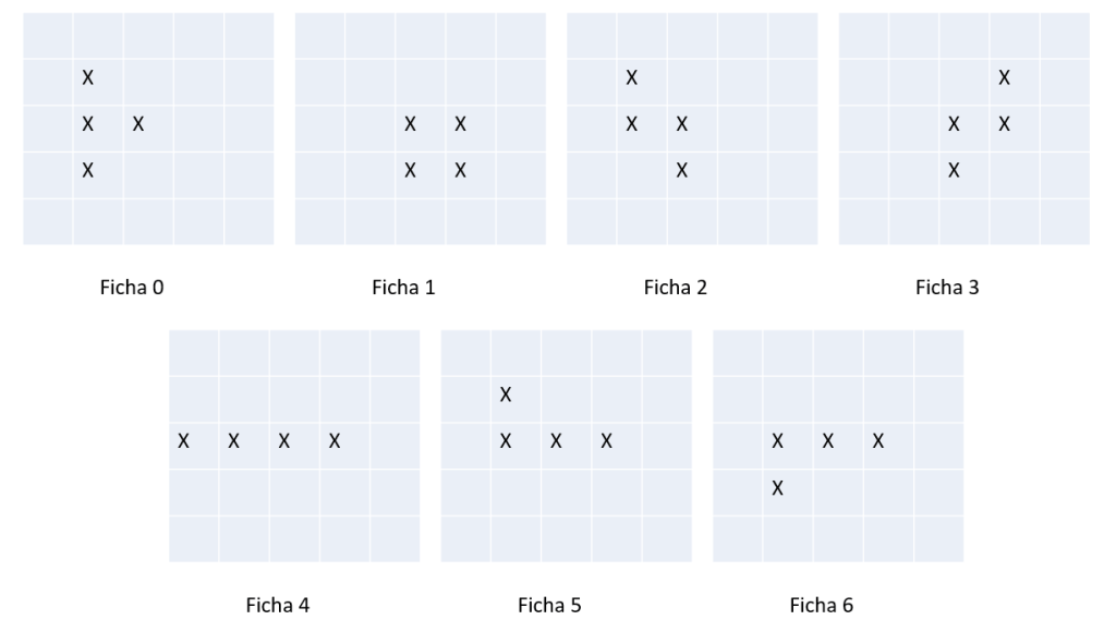 Bueno, pues ya sabemos definir una ficha, incluidas sus cuatro rotaciones, rotarla y moverla con el joystick 2. El siguiente paso, por tanto, va a ser definir las siete fichas que tiene el Tetris clásico: